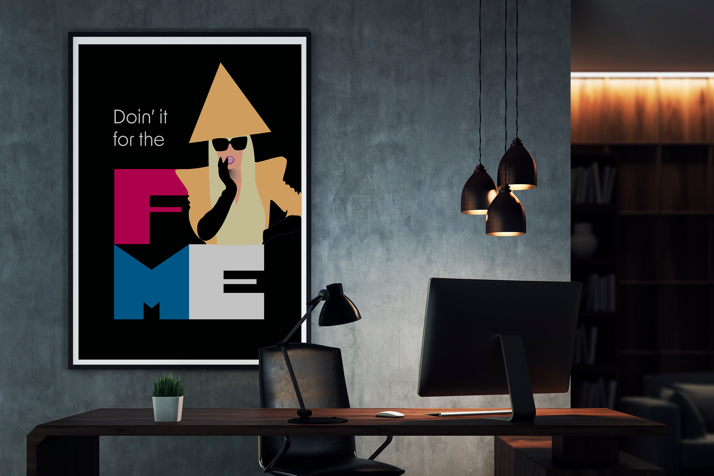 Koulutyö - Juliste Gaga Lady Gaga -aiheinen juliste, jonka tyylinspiraationa on toiminut bauhaus. Välineet; Illustrator, Photoshop